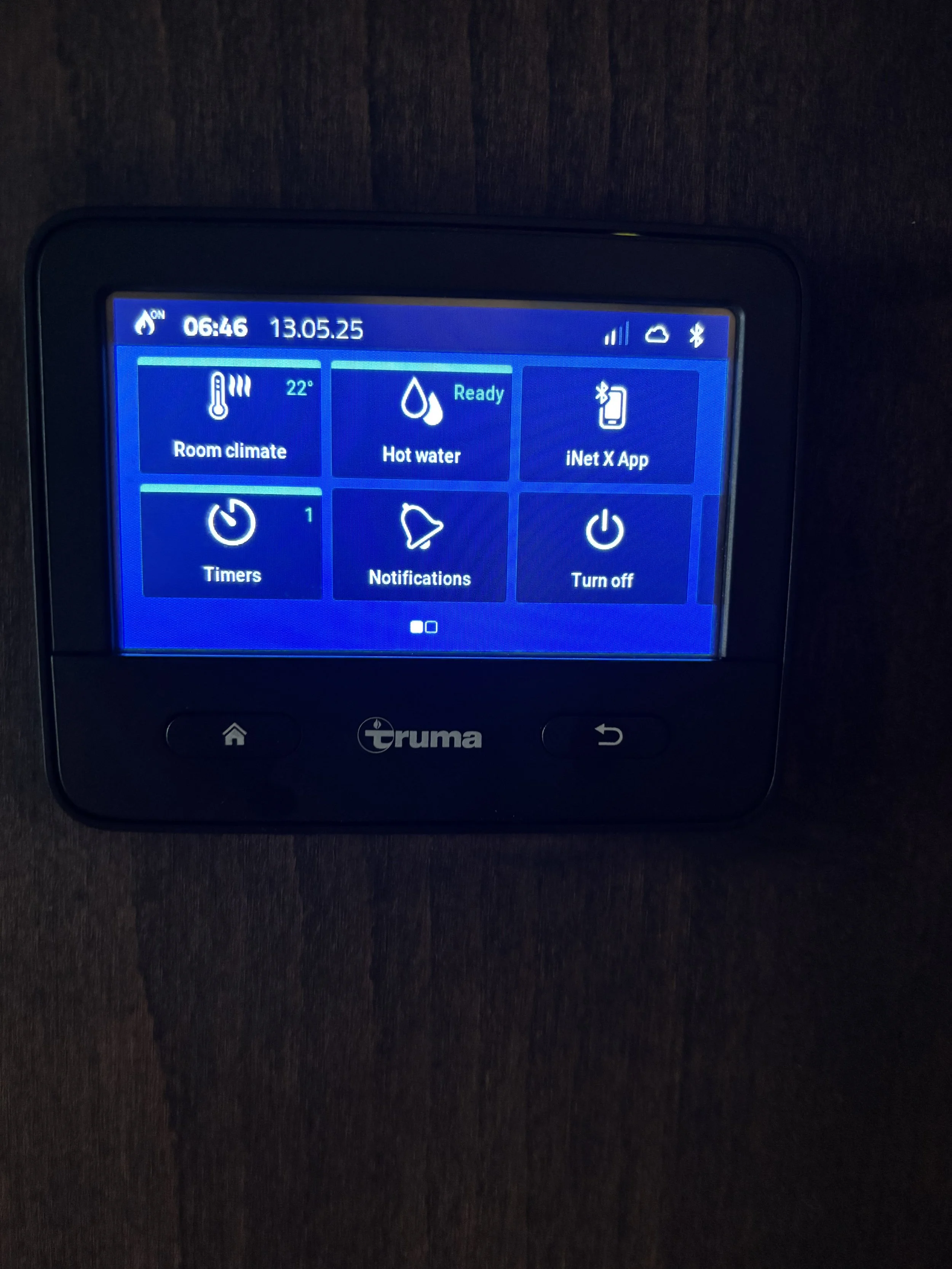 Truma gassvarmer – varme, varmtvann og vifte, styrt via display og app